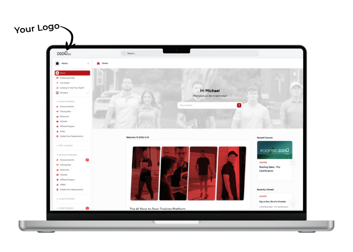 D2DU White Label Corp Account - Stop repeating yourself with a custom training platform featuring thousands of industry-specific videos plus YOUR exact systems, with full analytics on who's learning